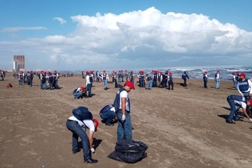 toneladas de contaminante tras el derrame de crudo que afectó las costas de tres entidades. El operativo de saneamiento continúa activo en 16 playas de Veracruz, Tabasco y Campeche que aún presentan rastros del material oleoso derivado del siniestro.