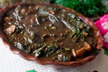 • Añadir los romeritos cocidos al mole y dejar hervir por cinco minutos.